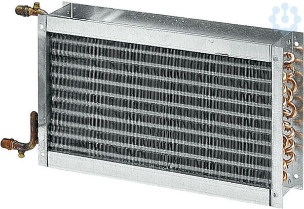 Wasser-Lufterhitzer für lüftungstechnische Anlagen. Wasseranschluss aus Kupferrohr mit Außengewinde. Montagehinweis: Hinter dem Ventilator in mindestens 1 m Abstand zwecks gleichmäßiger Anströmung montieren. Mit Entlüftung und Entleerung. Bei Montage auf Zugänglichkeit achten. Frostschutz bauseitig vorsehen. Mit versetzt angeordneten Sammelrohren, zur Aufnahme der Wärmeausdehnung schwimmend gelagert.Artikel: WHP 56-69, Max. Strömungsgeschwindigkeit: 3,5 m/s, Einbauort: Kanal, Einbaulage: senkrecht / waagerecht, Material Gehäuse: Stahlblech, verzinkt, Gewicht: 12,3 kg, Kanalmaß: 1000 mm x 500 mm, Breite: 1206 mm, Höhe: 570 mm, Tiefe: 120 mm, A: 940 mm, B: 500 mm, Lufterhitzerart: Wasser, Heizleistung: 69000 W, Massenstrom: 2368 kg/h, Vorlauftemperatur: 70 °C, Rücklauftemperatur: 50 °C, Max. Wassertemperatur: 100 °C, Max. Wasserdruck: 8 bar, Druckdifferenz Wasser: 7000 Pa, Geeignet für Boxlüfter: ja, Geeignet für Dachlüfter: nein, Geeignet für Rohrlüfter: nein, Geeignet für Wärmerückgewinnungsanlagen: nein, Gee