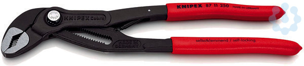 Alle Merkmale der KNIPEX Cobra® 87 01 250. Automatische Einstellung per Knopfdruck direkt am Werkstück. Durch die geschützt liegende Feder schnellt die Zange bei Betätigung des Druckknopfes (Einhandbedienung!) selbsttätig zu. - Einstellpositionen: 25 - Kapazität für Rohre (Durchmesser): Ø 2 - Kapazität für Rohre (Durchmesser): Ø 50mm - Kapazität für Muttern, Schlüsselweite (mm): 46mm