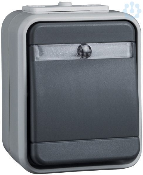 Wechsel-Kontrollschalter, 10 A 250V AC. Farbe: licht-/basaltgrau, mit lichtintensiver Glimmlampe, für Aufputzmontage. Schutzart IP 44, mit zwei Leitungseinführungen, Steckklemmen: Klemmbereich für Informationsleitungen ab Leitungsdurchmesser 0,5mm, für Kupferleiter 1,5 mm und 2,5 mm.