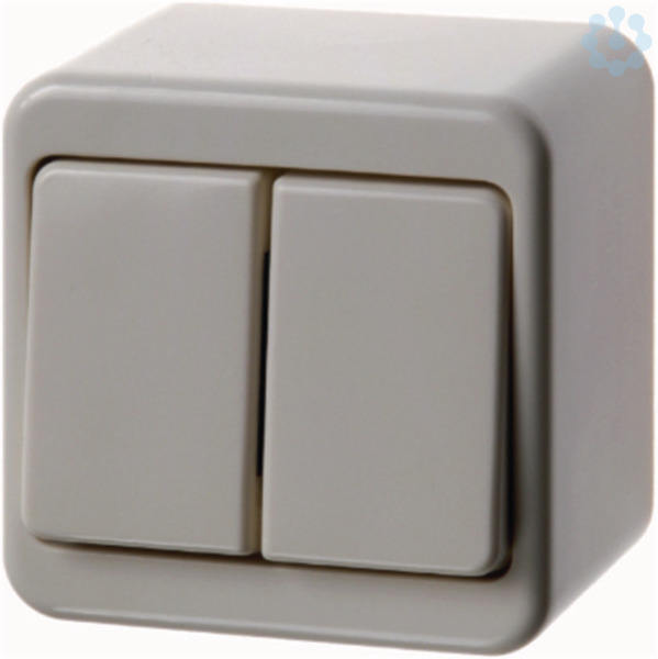 Doppel-Wechselschalter Aufputz mit getrennten Eingangsklemmen weiß, glänzend. Doppel-Wechselschalter mit Steckklemmen, Öffnung für Einführung oben und unten (ausbrechbar).