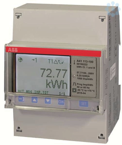 Wechselstromzähler zur Messung von einphasigen Netzen über einen Direktanschluss für Ströme bis maximal 80 A. Folgende Werte werden über ein weiß hinterleuchtetes Display mit bis zu 7 Stellen ausgegeben: Wirkenergie (Klasse 1), Leistung, Strom, Spannung (L-N) und Frequenz. Die Kommunikation kann über die integrierte Schnittstelle M-Bus oder über die Infrarotschnittstelle zur Anbindung eines KNX-Moduls erfolgen. Der Energiezähler hat einen Ausgang. Dieser kann wahlweise als Impulsausgang zur Ausgabe der Wirkenergie oder als Alarmausgang verwendet werden. Hier können bis zu 25 Alarmwerte (Schwellwerte mit Zeitverzögerung) eingestellt werden. Zähler ist geeicht nach MID und zugelassen gemäß IEC. Die Einbaubreite beträgt 4 DIN-Module.