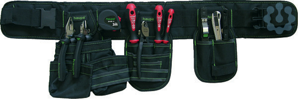 Werkzeuggürtel ?Basic?10 Taschen zur Organisation Ihrer Werkzeuge, Hammerschlaufe und Bandhalter zur leichten Gürtelmontage, Material: extra starkes 600D-Polyester, Farbe: grün, schwarz.Inhalt: ? 2K-VDE-Elektriker-Schraubendreher 5,5x125 mm ? 2K-VDE-Elektriker-Schraubendreher 3x100 mm ? 2K-VDE-Schraubendreher PH 2 ? 2K-Kombizange 180 mm ? 2K-Seitenschneider 160 mm ? VDE/GS Spannungsprüfer 125-250 V ? Leichtes Universal-Cuttermesser ? Abmantler Hakenklinge 8-28 mm ? Kabelschneider mit Abisolierfunktion ? Maßband 3 m