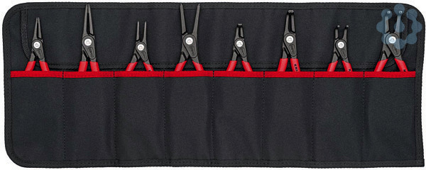 00 19 58 V02 Sicherungsringzangen-Set Rolltasche aus strapazierfähigem Polyester-Gewebe. Mit praktischem, verstellbarem Schnellverschluss. Acht gängige Präzisions-Sicherungsringzangen für höchste Anforderungen. Abmessungen, geöffnet (L x H): 610 x 240 mm. SB-Karte/Blister. Lieferumfang: 1 x 48 11 J1 KNIPEX Präzisions-Sicherungsringzange für Innenringe in Bohrungen (Ø 12 - 25 mm), 1 x 48 11 J2 KNIPEX Präzisions-Sicherungsringzange für Innenringe in Bohrungen (Ø 19 - 60 mm), 1 x 48 21 J11 KNIPEX Präzisions-Sicherungsringzange für Innenringe in Bohrungen (Ø 12 - 25 mm), 1 x 48 21 J21 KNIPEX Präzisions-Sicherungsringzange für Innenringe in Bohrungen (Ø 19 - 60 mm), 1 x 49 11 A1 KNIPEX Präzisions-Sicherungsringzange für Außenringe auf Wellen, 1 x 49 11 A2 KNIPEX Präzisions-Sicherungsringzange für Außenringe auf Wellen, 1 x 49 21 A11 KNIPEX Präzisions-Sicherungsringzange für Außenringe auf Wellen, 1 x 49 21 A21 KNIPEX Präzisions-Sicherungsringzange für Außenringe auf Wellen,