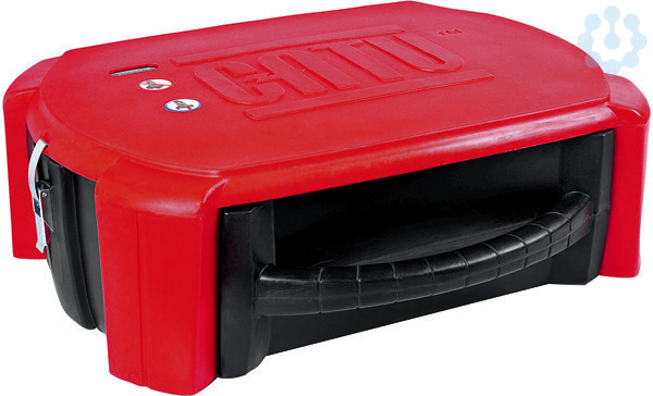 Tragbarer Rettungskoffer 36 kV, speziell für elektrische Sicherheitseingriffe konzipiert (Rettung von havarierten Elektromobilen usw. ). Kofferdeckel dient gleichzeitig als isolierender Hocker, um bei Niederschlägen nicht unmittelbar mit dem Medium in Berührung zu kommen (Personenschutz). Inhalt: - Isolierbank (Koffersockel), Isolierte Teleskopstange (45 kV), Rettungshaken mit Spannungsanzeiger (127 V 90 kV), Kabelschneider (36 kV), Isolierstiefel Paar (20 kV) Größe 44, Flasche Talkum, Klebeband gelb/schwarz, Hinweisschild (Erste-Hilfe-Maßnahmen), Elektro-Schutzhandschuhe (Klasse 3, bis 26, 5 kV, Größe 9), Transporttasche mit Karabinerhaken
