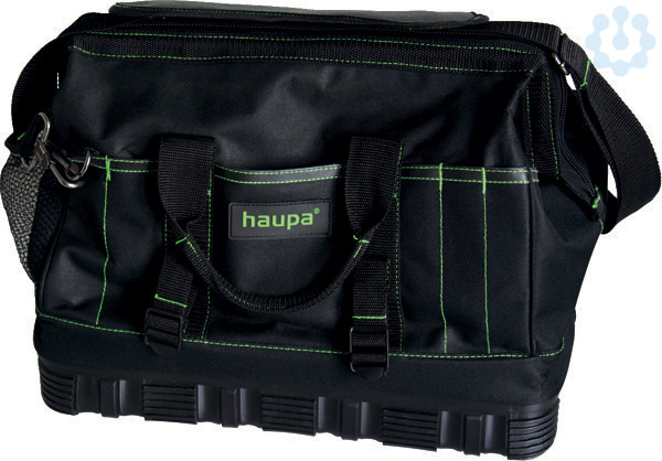 HAUPA ?ToolBag XL?Werkzeugtasche nicht nur für den Auszubildenden, mit Einsteckfächern innen und außen, Bodenschale mit Gummi verstärkt, doppelte Kreuznaht für hohe Belastung, abnehmbarer Schultergurt, verstellbar, Material: extra starkes 600D Polyester, wasserdicht und schmutzabweisend, Farbe: grün, schwarz
