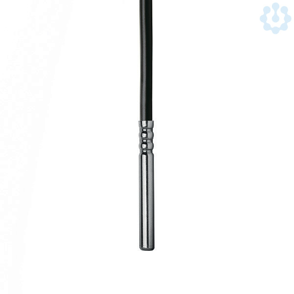 Das einsteckbare Widerstandsthermometer mit Anschlussleitung ermöglicht, aufgrund der Temperaturabhängigkeit des elektrischen Widerstandes seines eingebauten Platin-Sensors, eine Temperaturmessung in gasförmigen und flüssigen Medien. Das einteilige Schutzrohr ist geschweißt, besteht aus dem Werkstoff 1.4571 und hat eine Abmessung von 6 x 50 mm. Das Widerstandsthermometer eignet sich daher hervorragend für Einsatzgebiete in der Klima- und Kältetechnik, im Heizungs-, Ofen- und Apparatebau, sowie in der Labortechnik. Das Widerstandsthermometer nach DIN EN 60751 (Klasse B) ist als 1 x Pt100 in Zweileiterschaltung ausgeführt und für Temperaturen von -5 bis +105 °C ausgelegt. Die 1,5 m lange Anschlussleitung aus PUR ist am Übergang zugentlastet montiert. Die zulässige Umgebungstemperatur der Anschlussleitung beträgt -5 bis +105 °C. Das offene Anschlussende ist mit Aderendhülsen nach DIN 46228 Teil 4 bestückt.