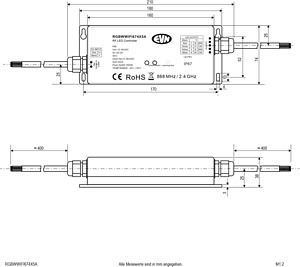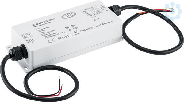 WIFI-RGB-Controller fuer RGB- und RGBW-LED-Leuchten. Einfache Steuerung der Leuchten ueber Smartphone oder Tablet, sowohl ueber Android, als auch ueber IOS-Geräte. Geeignet fuer Leuchten mit einer Betriebsspannung von 12, 24 und 36V/DC. Die tatsächlich zu verwendende Eingangsspannung ist abhängig von der benötigten Spannung der angeschlossenen Leuchten. 1x Eingang fuer 12-36V/DC und 5x Ausgang (RGBW+). Die Anschlussleitungen haben jeweils eine Länge von 40cm. Technische Daten: ta: -20°.C - 50°.C, tc: 75°.C, max. Ausgangsleistung je Kanal: 5A. 60W bei 12V/DC, 120W bei 24V/DC und 180W bei 36V/DC. Optional kann die Ansteuerung auch ueber Funk-Sender mit 868MHz oder 2,4GHz erfolgen.