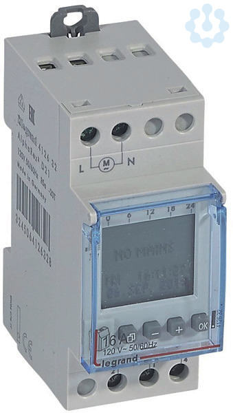 Legrand AlphaRex³ D21, digitale Wochenzeitschaltuhr, 1 Kanal, 56 Schaltprogramme, Betriebsspannung 120 V 50/60 Hz, Programmerstellung direkt am Gerät oder mit PC, AlphaSoft, PC-Adapter(412873) und Datenschlüssel(412872). Dauer EIN/AUS, Ferienprogramm, Zufallsprogramm, 1 Std.-Test, PIN-Code Sperre, Betriebsstundenzähler,Hintergrundbeleuchtung, automatische Sommer-/Winterzeitumstellung, 5 Jahre Gangreserve, Ganggenauigkeit +/- 0,1 Sek/Tag, Kürzeste Schaltzeit: 1 Sek., Nulldurchgangsschaltung. Schaltausgang: 1 Wechsler.