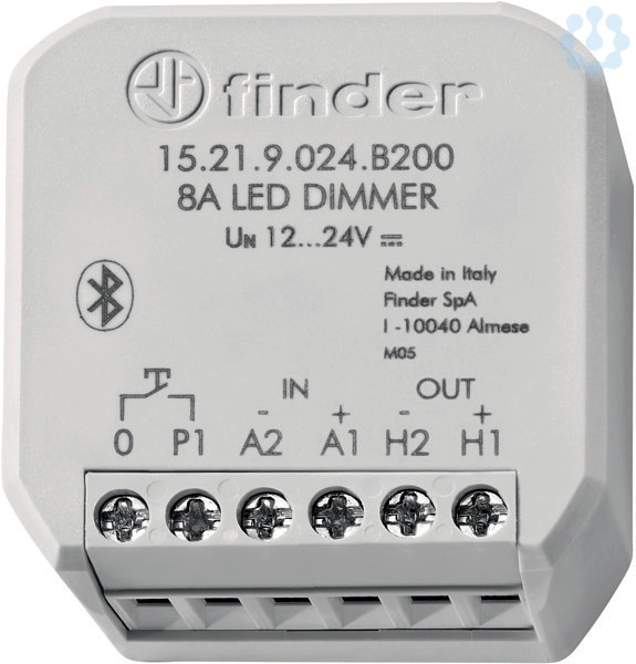 Bluetooth Dimmer (YESLY-Dimmaktor) für Unterputzdosen-Montage, 1 Ausgang mit PWM-Technologie, kompatibel mit LED-Lichtbänder, maximale Belastung 8 A, 1 Eingang für kabelgebundenen Taster, Versorgungsspannung: 12...24 V DC, Übertemperatur-, Überlast-, Kurzschluss- und Verpolschutz, Übertragungsreichweite ca. 10 Meter im freien Raum (ohne Hindernisse)