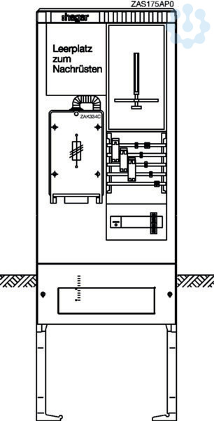 Zähleranschlusssäule 175,universN,1 Zählerplatz,3-Punkt,5-polig,Leerplatz,HAK. Bestückte Zähleranschlusssäule nach DIN EN 61439, Schutzart IP 44, mit Eingrabsockel, aus glasfaserverstärktes Polyester FS 833.5 nach DIN EN 14598. Zähleranschlusssäule ist nach den aktuellen technischen Anschlussbedingungen des jeweiligen Energieversorgers bestückt und deckt die jeweiligen TAB-Anforderungen ab. Profiliertes Gehäuse im Rippendesign. Tür mit Öffnungswinkel 180 Grad bei freiem Stand und 90 Grad bei angereihten Gehäusen. Rechte Tür ist aushängbar. Schließung mit Schwenkhebel und Drei-Punkt-Basküleverschluss mit 1 bzw. 2 Profilhalbzylindern. Eingebauter Zylinder unten mit gleichschließender Serie. Ein zweiter Schließzylinder (z. B. aus VNB-Schließanlage) kann oben nach Entfernen des Vierkantverschlusses eingebaut werden. Wenn kein zweiter Profilhalbzylinder eingebaut wird, muss die zweite obere Öffnung mit einem Blindverschluss bestückt werden. Die Belüftung erfolgt über labyrinthartig ausgebildete Lüftungskanäle und