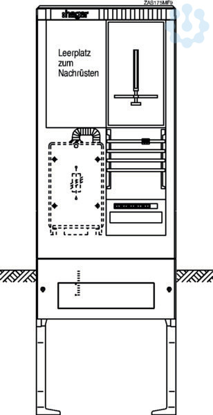 Zähleranschlusssäule 175,universN,1 Zählerplatz,3-Punkt,4-polig,Leerplatz. Bestückte Zähleranschlusssäule nach DIN EN 61439, Schutzart IP 44, mit Eingrabsockel, aus glasfaserverstärktes Polyester FS 833.5 nach DIN EN 14598. Zähleranschlusssäule ist nach den aktuellen technischen Anschlussbedingungen des jeweiligen Energieversorgers bestückt und deckt die jeweiligen TAB-Anforderungen ab. Profiliertes Gehäuse im Rippendesign. Tür mit Öffnungswinkel 180 Grad bei freiem Stand und 90 Grad bei angereihten Gehäusen. Rechte Tür ist aushängbar. Schließung mit Schwenkhebel und Drei-Punkt-Basküleverschluss mit 1 bzw. 2 Profilhalbzylindern. Eingebauter Zylinder unten mit gleichschließender Serie. Ein zweiter Schließzylinder (z. B. aus VNB-Schließanlage) kann oben nach Entfernen des Vierkantverschlusses eingebaut werden. Wenn kein zweiter Profilhalbzylinder eingebaut wird, muss die zweite obere Öffnung mit einem Blindverschluss bestückt werden. Die Belüftung erfolgt über labyrinthartig ausgebildete Lüftungskanäle und ist