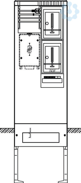 Zähleranschlusssäule 205,universZ,1 Zählerplatz,1 SG-Platz,4-polig. Bestückte Zähleranschlusssäule nach DIN EN 61439, Schutzart IP 44, mit Eingrabsockel, aus glasfaserverstärktes Polyester FS 833.5 nach DIN EN 14598. Zähleranschlusssäule ist nach den aktuellen technischen Anschlussbedingungen des jeweiligen Energieversorgers bestückt und deckt die jeweiligen TAB-Anforderungen ab. Profiliertes Gehäuse im Rippendesign. Tür mit Öffnungswinkel 180 Grad bei freiem Stand und 90 Grad bei angereihten Gehäusen. Rechte Tür ist aushängbar. Schließung mit Schwenkhebel und Drei-Punkt-Basküleverschluss mit 1 bzw. 2 Profilhalbzylindern. Eingebauter Zylinder unten mit gleichschließender Serie. Ein zweiter Schließzylinder (z. B. aus VNB-Schließanlage) kann oben nach Entfernen des Vierkantverschlusses eingebaut werden. Wenn kein zweiter Profilhalbzylinder eingebaut wird, muss die zweite obere Öffnung mit einem Blindverschluss bestückt werden. Die Belüftung erfolgt über labyrinthartig ausgebildete Lüftungskanäle und ist durch E