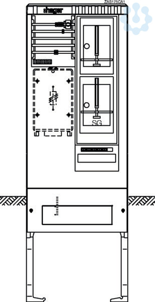 Zähleranschlusssäule 175,universZ,1 Zählerplatz,1 SG-Platz,3-Punkt,5-polig. Bestückte Zähleranschlusssäule nach DIN EN 61439, Schutzart IP 44, mit Eingrabsockel, aus glasfaserverstärktes Polyester FS 833.5 nach DIN EN 14598. Zähleranschlusssäule ist nach den aktuellen technischen Anschlussbedingungen des jeweiligen Energieversorgers bestückt und deckt die jeweiligen TAB-Anforderungen ab. Profiliertes Gehäuse im Rippendesign. Tür mit Öffnungswinkel 180 Grad bei freiem Stand und 90 Grad bei angereihten Gehäusen. Rechte Tür ist aushängbar. Schließung mit Schwenkhebel und Drei-Punkt-Basküleverschluss mit 1 bzw. 2 Profilhalbzylindern. Eingebauter Zylinder unten mit gleichschließender Serie. Ein zweiter Schließzylinder (z. B. aus VNB-Schließanlage) kann oben nach Entfernen des Vierkantverschlusses eingebaut werden. Wenn kein zweiter Profilhalbzylinder eingebaut wird, muss die zweite obere Öffnung mit einem Blindverschluss bestückt werden. Die Belüftung erfolgt über labyrinthartig ausgebildete Lüftungskanäle und ist
