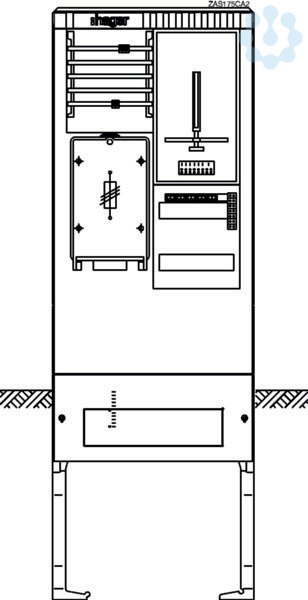 Zähleranschlusssäule 175,universZ,1 Zählerplatz,3-Punkt,5-polig,HAK,ZSK. Bestückte Zähleranschlusssäule nach DIN EN 61439, Schutzart IP 44, mit Eingrabsockel, aus glasfaserverstärktes Polyester FS 833.5 nach DIN EN 14598. Zähleranschlusssäule ist nach den aktuellen technischen Anschlussbedingungen des jeweiligen Energieversorgers bestückt und deckt die jeweiligen TAB-Anforderungen ab. Profiliertes Gehäuse im Rippendesign. Tür mit Öffnungswinkel 180 Grad bei freiem Stand und 90 Grad bei angereihten Gehäusen. Rechte Tür ist aushängbar. Schließung mit Schwenkhebel und Drei-Punkt-Basküleverschluss mit 1 bzw. 2 Profilhalbzylindern. Eingebauter Zylinder unten mit gleichschließender Serie. Ein zweiter Schließzylinder (z. B. aus VNB-Schließanlage) kann oben nach Entfernen des Vierkantverschlusses eingebaut werden. Wenn kein zweiter Profilhalbzylinder eingebaut wird, muss die zweite obere Öffnung mit einem Blindverschluss bestückt werden. Die Belüftung erfolgt über labyrinthartig ausgebildete Lüftungskanäle und ist du