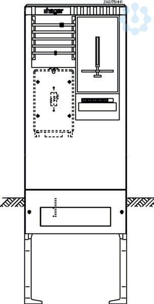 Zähleranschlusssäule 175,universZ,1 Zählerplatz,3-Punkt,5-polig. Bestückte Zähleranschlusssäule nach DIN EN 61439, Schutzart IP 44, mit Eingrabsockel, aus glasfaserverstärktes Polyester FS 833.5 nach DIN EN 14598. Zähleranschlusssäule ist nach den aktuellen technischen Anschlussbedingungen des jeweiligen Energieversorgers bestückt und deckt die jeweiligen TAB-Anforderungen ab. Profiliertes Gehäuse im Rippendesign. Tür mit Öffnungswinkel 180 Grad bei freiem Stand und 90 Grad bei angereihten Gehäusen. Rechte Tür ist aushängbar. Schließung mit Schwenkhebel und Drei-Punkt-Basküleverschluss mit 1 bzw. 2 Profilhalbzylindern. Eingebauter Zylinder unten mit gleichschließender Serie. Ein zweiter Schließzylinder (z. B. aus VNB-Schließanlage) kann oben nach Entfernen des Vierkantverschlusses eingebaut werden. Wenn kein zweiter Profilhalbzylinder eingebaut wird, muss die zweite obere Öffnung mit einem Blindverschluss bestückt werden. Die Belüftung erfolgt über labyrinthartig ausgebildete Lüftungskanäle und ist durch Eind