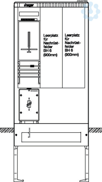 Zähleranschlusssäule 207,universZ,1 Zählerplatz,3-Punkt,5-polig,2 Leerfelder,HAK. Bestückte Zähleranschlusssäule nach DIN EN 61439, Schutzart IP 44, mit Eingrabsockel, aus glasfaserverstärktes Polyester FS 833.5 nach DIN EN 14598. Zähleranschlusssäule ist nach den aktuellen technischen Anschlussbedingungen des jeweiligen Energieversorgers bestückt und deckt die jeweiligen TAB-Anforderungen ab. Profiliertes Gehäuse im Rippendesign. Tür mit Öffnungswinkel 180 Grad bei freiem Stand und 90 Grad bei angereihten Gehäusen. Rechte Tür ist aushängbar. Schließung mit Schwenkhebel und Drei-Punkt-Basküleverschluss mit 1 bzw. 2 Profilhalbzylindern. Eingebauter Zylinder unten mit gleichschließender Serie. Ein zweiter Schließzylinder (z. B. aus VNB-Schließanlage) kann oben nach Entfernen des Vierkantverschlusses eingebaut werden. Wenn kein zweiter Profilhalbzylinder eingebaut wird, muss die zweite obere Öffnung mit einem Blindverschluss bestückt werden. Die Belüftung erfolgt über labyrinthartig ausgebildete Lüftungskanäle u