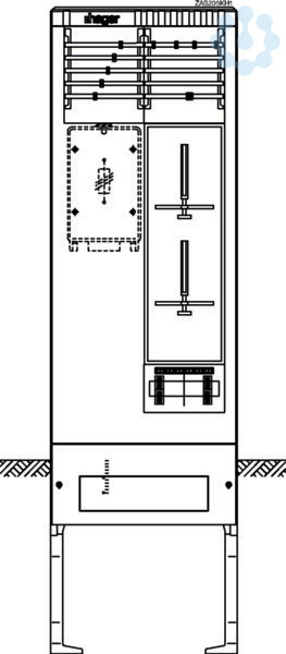 Zähleranschlusssäule 205,universN,2 Zählerplätze,3-Punkt,5-polig. Bestückte Zähleranschlusssäule nach DIN EN 61439, Schutzart IP 44, mit Eingrabsockel, aus glasfaserverstärktes Polyester FS 833.5 nach DIN EN 14598. Zähleranschlusssäule ist nach den aktuellen technischen Anschlussbedingungen des jeweiligen Energieversorgers bestückt und deckt die jeweiligen TAB-Anforderungen ab. Profiliertes Gehäuse im Rippendesign. Tür mit Öffnungswinkel 180 Grad bei freiem Stand und 90 Grad bei angereihten Gehäusen. Rechte Tür ist aushängbar. Schließung mit Schwenkhebel und Drei-Punkt-Basküleverschluss mit 1 bzw. 2 Profilhalbzylindern. Eingebauter Zylinder unten mit gleichschließender Serie. Ein zweiter Schließzylinder (z. B. aus VNB-Schließanlage) kann oben nach Entfernen des Vierkantverschlusses eingebaut werden. Wenn kein zweiter Profilhalbzylinder eingebaut wird, muss die zweite obere Öffnung mit einem Blindverschluss bestückt werden. Die Belüftung erfolgt über labyrinthartig ausgebildete Lüftungskanäle und ist durch Ein