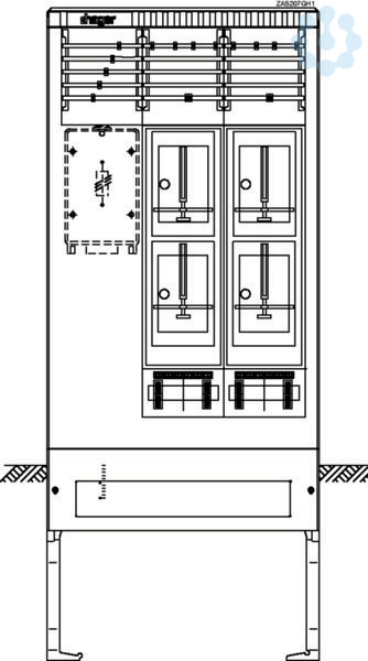 Zähleranschlusssäule 207,universN,4 Zählerplätze,3-Punkt,5-polig. Bestückte Zähleranschlusssäule nach DIN EN 61439, Schutzart IP 44, mit Eingrabsockel, aus glasfaserverstärktes Polyester FS 833.5 nach DIN EN 14598. Zähleranschlusssäule ist nach den aktuellen technischen Anschlussbedingungen des jeweiligen Energieversorgers bestückt und deckt die jeweiligen TAB-Anforderungen ab. Profiliertes Gehäuse im Rippendesign. Tür mit Öffnungswinkel 180 Grad bei freiem Stand und 90 Grad bei angereihten Gehäusen. Rechte Tür ist aushängbar. Schließung mit Schwenkhebel und Drei-Punkt-Basküleverschluss mit 1 bzw. 2 Profilhalbzylindern. Eingebauter Zylinder unten mit gleichschließender Serie. Ein zweiter Schließzylinder (z. B. aus VNB-Schließanlage) kann oben nach Entfernen des Vierkantverschlusses eingebaut werden. Wenn kein zweiter Profilhalbzylinder eingebaut wird, muss die zweite obere Öffnung mit einem Blindverschluss bestückt werden. Die Belüftung erfolgt über labyrinthartig ausgebildete Lüftungskanäle und ist durch Ein