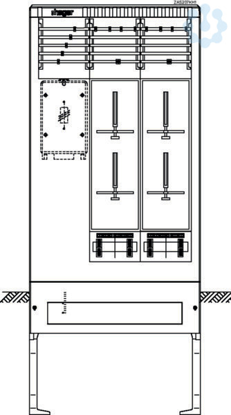 Zähleranschlusssäule 207,universN,4 Zählerplätze,3-Punkt,5-polig. Bestückte Zähleranschlusssäule nach DIN EN 61439, Schutzart IP 44, mit Eingrabsockel, aus glasfaserverstärktes Polyester FS 833.5 nach DIN EN 14598. Zähleranschlusssäule ist nach den aktuellen technischen Anschlussbedingungen des jeweiligen Energieversorgers bestückt und deckt die jeweiligen TAB-Anforderungen ab. Profiliertes Gehäuse im Rippendesign. Tür mit Öffnungswinkel 180 Grad bei freiem Stand und 90 Grad bei angereihten Gehäusen. Rechte Tür ist aushängbar. Schließung mit Schwenkhebel und Drei-Punkt-Basküleverschluss mit 1 bzw. 2 Profilhalbzylindern. Eingebauter Zylinder unten mit gleichschließender Serie. Ein zweiter Schließzylinder (z. B. aus VNB-Schließanlage) kann oben nach Entfernen des Vierkantverschlusses eingebaut werden. Wenn kein zweiter Profilhalbzylinder eingebaut wird, muss die zweite obere Öffnung mit einem Blindverschluss bestückt werden. Die Belüftung erfolgt über labyrinthartig ausgebildete Lüftungskanäle und ist durch Ein