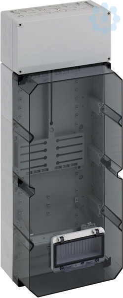 Zählergehäuse, Industrie Qualität, mit transparentem Deckel, serienmäßig plombierbar, mit montiertem Zählerkreuz für Drehstromzähler und Zählerbefestigungsschrauben, mit zusätzlichem Klappfenster zur Bedienung eines selektiven Hauptschalters, mit 35mm Normschiene zum Einbau eines selektiven Hauptschalters, inkl. 2 einpoligen HA-Klemmen 25/16qmm für N und PE, mit zusätzlichem Anschlussraum 150mm oben, mit 35mm Normschiene, mit Doppelmembranstutzen, Verschluss- und Isolierstopfen