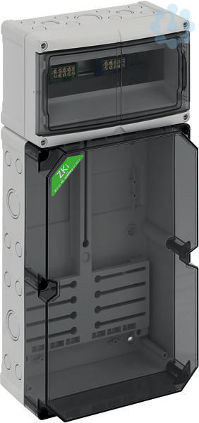 Zählergehäuse, Industrie Qualität, mit transparentem Deckel, serienmäßig plombierbar, mit montiertem Zählerkreuz und Zählerbefestigungsschrauben, serienmäßig plombierbarer Konsumentenraum oben, mit 35mm Normschiene und PE/N-Doppelklemmen, mit Doppelmembranstutzen, Verschluss- und Isolierstopfen, geeignet für Rundsteuerempfänger nach DIN 43861-2, für Zähler mit Drei-Punkt-Befestigung und einer Tiefe von max. 80mm