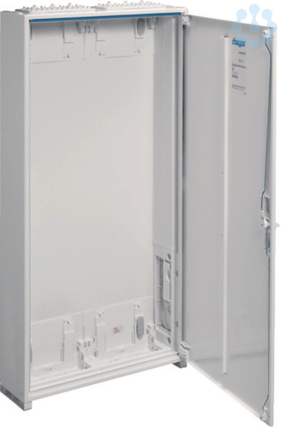 Leerschrank, universZ, 1100x550x160mm, Schutzklasse II, IP44, 168 Platzeinheiten. Wandaufbauschrank bzw. Wandeinbauschrank mit VDE-Zeichen (Fertigungsüberwachung) nach DIN VDE 0603-1, Maßnorm nach DIN 43 870, zur Aufputz- oder Unterputzmontage oder teilversenkter Montage, zum Aufbau einer Zählerplatzanlage bis 355 A, AC 230/400 V 50 Hz, Schutzart IP44, IP54, DIN VDE 0470-1, Schutzklasse II, Schutzart IP3X hinter der Tür, Luft- und Kriechstrecken nach DIN EN 60664-1. Bestehend aus Schrank mit Tür, ab 800 mm Breite mit zwei Türen, Korpus und Türen aus pulverbeschichtetem, eingebranntem, stabil profiliertem 1 mm dicken Stahlblech. Innenauskleidung aus Isolierstoff, oben und unten werkzeuglos abnehmbare 2-Komponenten Leitungseinführungen. Rückseite mit Vorprägungen im Kunststoffteil zum Einbau von 2-Komponenten, Leitungseinführungen, seitlich integrierte abnehmbare Sammelschienendurchführungen mit Vorprägungen für Leitungseinführungen. Tür frontbündig mit innen liegenden, justierbaren Scharnieren, wahlweise recht