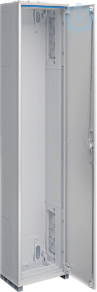 Zählerschrank, univers Z, 1400x300x205 mm,Schutzklasse II, 108 Platzeinheiten. Schrankgehäuse nach DIN VDE 0603-1, Maßnorm DIN 43870 zur Aufputz, Unterputz oder teilversenkter Montage. Zum Aufbau einer Zählerverteileranlage bis 355 A, Bemessungsspannung 230/400 V 50 Hz. Schutzart IP31 (IP44/IP54 nach DIN VDE 0470-1), Schutzklasse II schutzisoliert, Schutzart IP3X hinter der Tür. Bestehend aus Schrank mit Tür aus pulverbeschichtetem, eingebranntem, stabil profiliertem 1 mm dickem Stahlblech. Innenauskleidung komplett aus Kunststoff. Leitungseinführungen oben und unten durch eingebaute Kunststoffflanschplatten, rückseitige Vorprägung im Kunststoffteil und seitlich eingebaute Kunststoff-Flanschplatten im Bereich des NAR (geeignet als Sammelschienendurchführung), des RfZ (nur bei Bauhöhe 1100 mm) und des AAR. Tür frontbündig mit innenliegenden, justierbaren Scharnieren, wahlweise rechts oder links anschlagbar mit 110° Öffnungswinkel. Türverschluss mit Vorreiber, ab Breite 800 mm und bei allen Schränken ab einer H