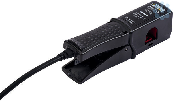 Der kleine, kompakte Zangenstromwandler MINI 103 ist das ideale Zubehör für Multimeter zur Wechselstrommessung in Anwendungen mit geringer Leistung des Gewerbe- und Industriebereichs. Die MINI 103-Zange verfügt über einen Überspannungsschutz, der sie beim Abklemmen vom Messgerät schützt, wenn an den umfassten Leitungen eine Spannung anliegt. Wichtigste technische Daten des Modells MINI 103: Ø 16 mm max. Nennstromstärke: 200 A AC Ausgangssignal: Wechselstrom Wandlerverhältnis: 1000/1 Ausgang: über Kabel und Stecker (Ø4 mm, isoliert) Überspannungsschutz am Ausgang