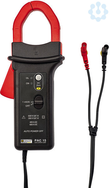 Nennstromstärke: 400 A AC / 600 A DC Ausgangssignal: Gleich- und Wechselspannung Verhältnis Ausgang/Eingang: 1 mV / A Ausgang: über Kabel und Stecker (Ø4 mm, isoliert)