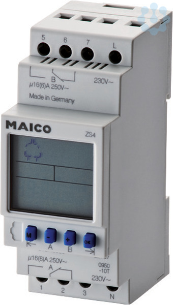 Zweikanalige Zeitschaltuhr für Verteilereinbau. Ohne Netzanschluss programmierbar (6 Jahre Gangreserve). Textbasierte Menü-Führung und selbsterklärende Piktogramme/Symbole. Großes und übersichtliches Display mit zwei hochauflösenden Textzeilen (Punkte-Matrix). Einfache Handhabung. Schnelle und intuitive Programmierung. 46 Speicherplätze. Tages- und Wochenprogramm. Ferien- und Impulsprogramm. Permanentschaltung nach Datum. Manuelle Permanentschaltung. Manuelle Schaltungsvorwegnahme. Automatische Schaltzeitortierung beim Auslesen. Automatische Sommerzeitumstellung. Anzeige der Betriebsstunden des Gerätes und je Kanal. Sicherheit durch PIN-Codierung. 2 Wechsler. Kürzester Schaltabstand 1 min. Schaltleistung 16 A / 250 V.Artikel: ZS 4, Bemessungsspannung: 230 V, Netzfrequenz: 50 Hz / 60 Hz, Leistungsaufnahme: 1,5 W, Schutzart: IP 20, Elektrische Steckverbindung: Schraubanschluss, Einbauart: Verteilertafel, Material Gehäuse: Kunststoff, Gewicht: 0,1 kg, Breite: 36 mm, Höhe: 90 mm, Tiefe: 58 mm, Umgebungstemperatur