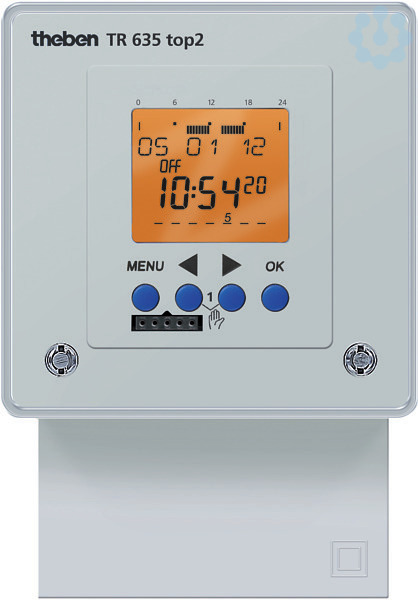 Digital-Zeitschaltuhr mit Stecksockel für Wandaufbau, Frontrahmen 72x72mm, textorientierte Bedienerführung und hinterleuchtetes Display, Schnittstelle für Speicherkarte OBELISK top2, Gangreserve und programmierte Sommer-/Winterzeitumstellung. Tages-und Wochenprogramm, Ferien-, Impuls-, und Zyklusprogramm, 2 Zufallsprogramme, Ablauf-Timer, Dauerschaltung EIN / AUS / AUTO, Schaltungsvorwahl, 84 Speicherplätze, PIN-Codierung, 1 Kanal