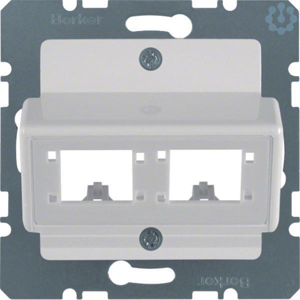 Zentralplatte für 1 oder 2 Einzelmodule Reichle&De-Massari polarweiß, glänzend. Zentralplatte 2-fach für Mini-Com Module, 1 oder 2 Einzelmodule, mit Tragplatte, 30° Schrägauslass, ohne Spreizkrallen. Hinweis: Nur mit Zwischenring des Schalterprogramms zu verwenden. Beschriftungsfeld einrastbar in passenden Zwischenring.