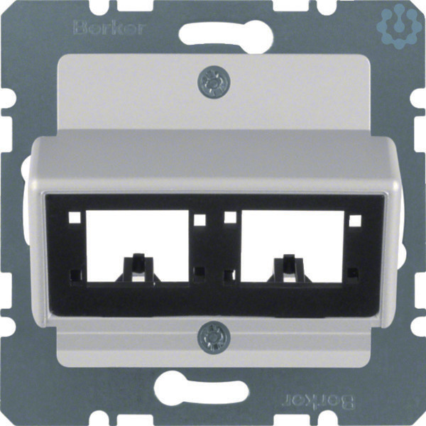 Zentralplatte für 1 oder 2 Einzelmodule Reichle&De-Massari alu, matt. Zentralplatte 2-fach für Mini-Com Module, 1 oder 2 Einzelmodule, mit Tragplatte, 30° Schrägauslass, ohne Spreizkrallen. Hinweis: Nur mit Zwischenring des Schalterprogramms zu verwenden. Beschriftungsfeld einrastbar in passenden Zwischenring.