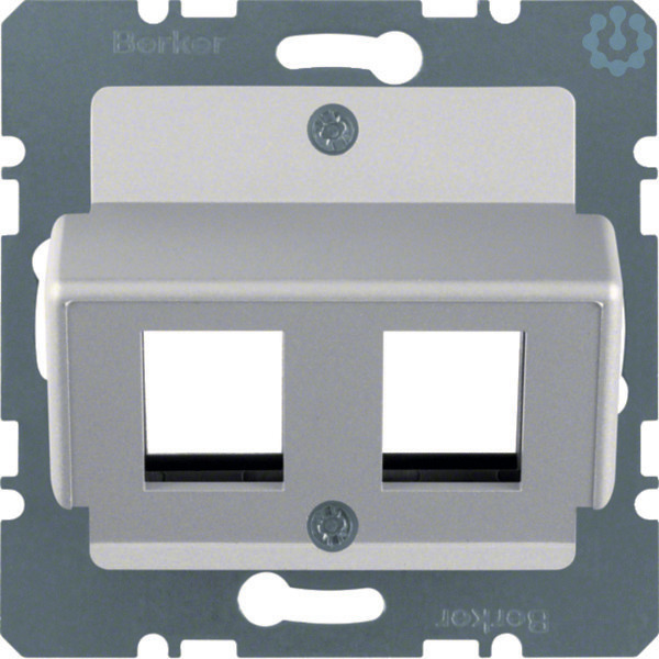 Zentralplatte für Krone Modular Jacks Zentralplattensystem alu, matt. Zentralplatte 2-fach für Krone Modular Jacks, Cat.5 / Cat.5e/ Cat.6, Krone LWL-Kupplungen MT-RJ Jacks und 3M LWL-Kupplungen Volition. Mit Tragplatte, 30° Schrägauslass, ohne Spreizkrallen. Hinweis: Nur mit Zwischenring des Schalterprogramms zu verwenden. Beschriftungsfeld einrastbar in passenden Zwischenring.