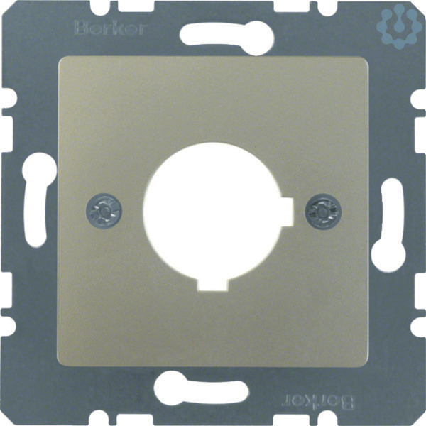 Zentralplatte für Melde- und Befehlsgerät Ø 22,5 mm edelstahl, lackiert. Zentralplatte für Melde- und Befehlsgerät mit Tragplatte, mit Ausschnitt, nur für Schraubbefestigung über Tragplatte. Geeignet für Potentialausgleich-Einbaubuchse, Rundsteckverbinder und Kleinspannungsbuchse. Hinweis: Nur mit Zwischenring des Schalterprogramms zu verwenden. Beschriftungsfeld einrastbar in passenden Zwischenring.