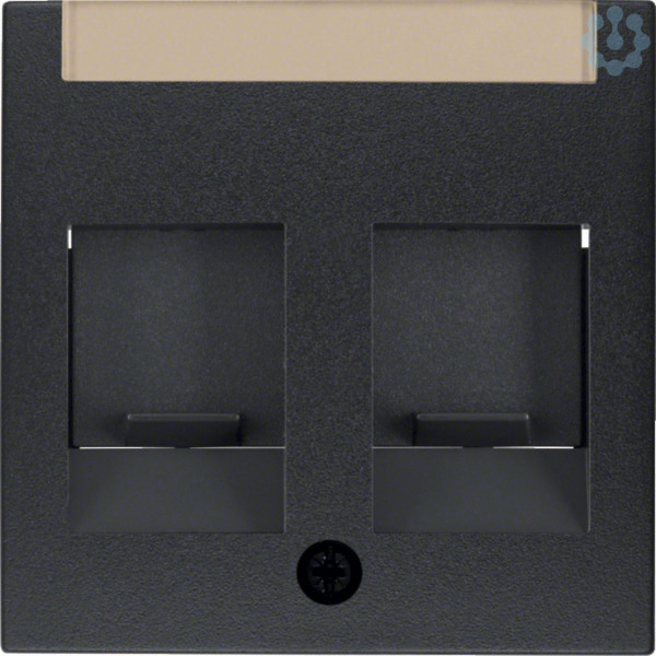 Z.-Stk. mit Staubschutzschiebern und Beschriftungsfeld B.3/B.7 anthrazit, matt. Zentralstück mit Staubschutzschiebern und Beschriftungsfeld, 2-fach. Für Tragplatten mit farbigen Aufnahmen. Unterputz-Installation, Flächen-/Designprogramm. Material: Kunststoff, Thermoplast, bruchsicher, halogenfrei.