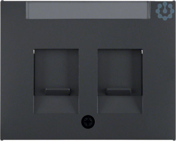 Zentralstück mit Staubschutzschiebern und Beschriftungsfeld K.1 anthrazit, matt. Zentralstück mit Staubschutzschiebern und Beschriftungsfeld. Für Tragplatten mit farbigen Aufnahmen 2-fach. Unterputz-Installation, Flächenprogramm. Material: Kunststoff, Thermoplast, bruchsicher, halogenfrei.