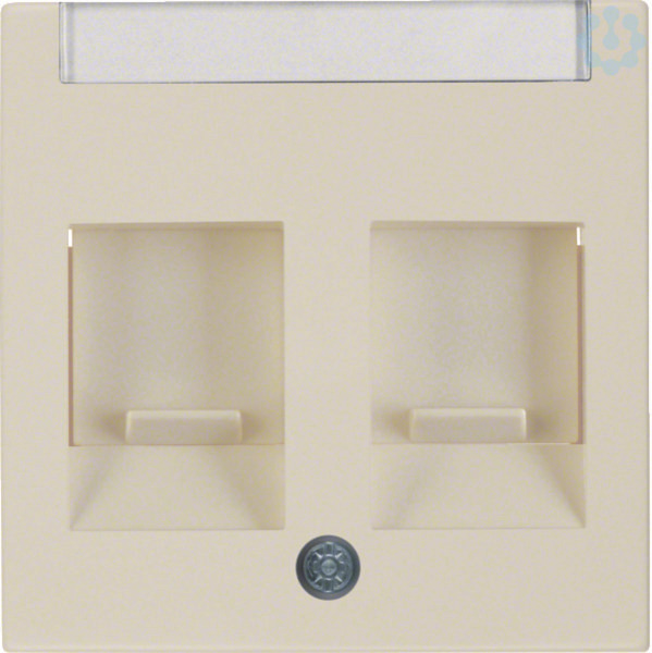 Zentralstück mit Staubschutzschiebern und Beschriftungsfeld S.1 weiß, glänzend. Zentralstück mit Staubschutzschiebern und Beschriftungsfeld, 2-fach. Für Tragplatten mit farbigen Aufnahmen. Unterputz-Installation, Standardprogramm. Material: Kunststoff, Thermoplast, bruchsicher, halogenfrei.