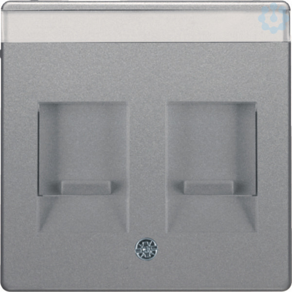 Zentralstück mit Staubschutzschiebern und Beschriftungsfeld Q.x alu samt, lack. Zentralstück mit Staubschutzschiebern und Beschriftungsfeld, 2-fach. Für Tragplatten mit farbigen Aufnahmen. Unterputz-Installation, Flächenprogramm. Material: Kunststoff, Thermoplast, bruchsicher, halogenfrei.