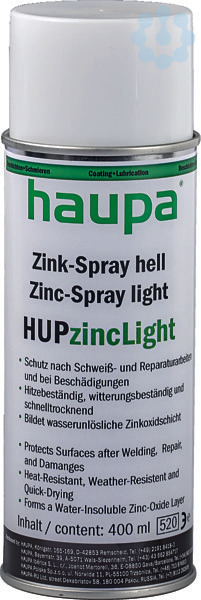 Zink-Spray hell HUPzincLightAnwendung HUPzincDark/HUPzincLight: Zur Nachbesserung von feuerverzinktenTeilen, nachträglicher Schutz nach Schweißarbeiten, zur Ausbesserung beschädigter Oberflächen, Korrosionsschutz durch galvanische Wirkung, Schutzversiegelung für Rohrleitungen und Metalle, Grundierung für nachfolgende Anstriche. Bildet eine dauerhafte Schutzschicht mit wasserunlöslichem Zinkoxid auf Eisen (Stahl) und schützt damit auch schadhafte Stellen. Eigenschaften: HUPzinc ist ein Gemisch aus hochreinem Zink- und Aluminiumpulver, hitzebeständig, witterungsbeständig und schnelltrocknend.? Schutz nach Schweiß- und Reparaturarbeiten und bei Beschädigungen ? Hitzebeständig, witterungsbeständig und schnelltrocknend ? Bildet wasserunlösliche Zinkoxidschicht
