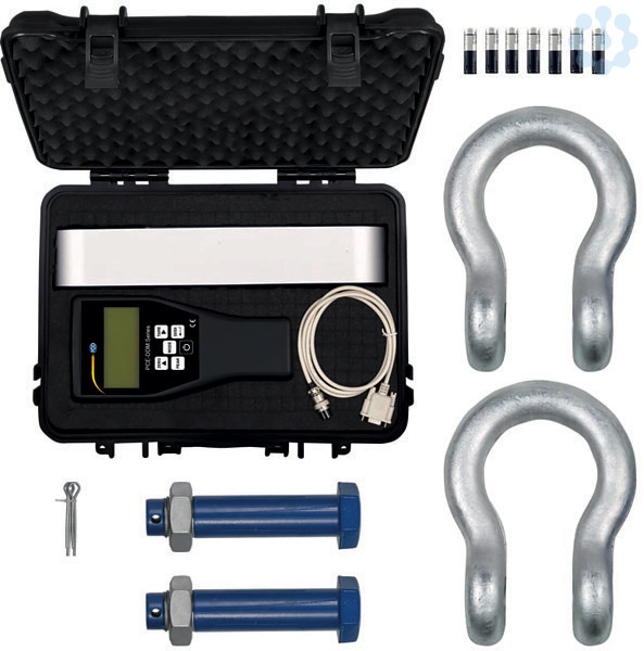 Die Zugmesslasche wird mit einer Funkanzeige und zwei Schäkel in einem Transportkoffer geliefert. Interessante Funktionen der Zugmesslasche sind PEAK Hold Funktion, Summierfunktion, sowie die verschiedenen Messeinheiten wie z.B. kg / t / lb / N oder kN. Die Zugmesslasche ist nur für Zugmessungen geeignet, für Druckversuche müssen andere Kraftmessgeräte verwendet werden wie z.B. unser PCE-FB Kraftmessgerät.