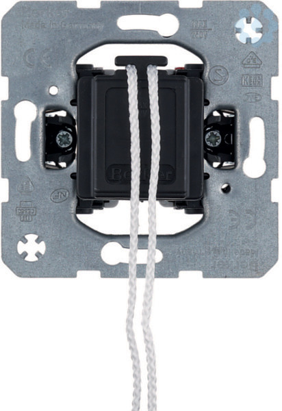 Zugschalter Aus/Wechsel 10 AX. Zugschalter-Einsatz, Aus/Wechselschalter, beleuchtbar mit Glimm- und Glühaggregat mit N-Klemme für Beleuchtung und Kontrollschaltung, mit Steckklemmen, Zugschnuranbindung. Für Wand- und Deckenmontage.