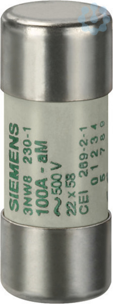 SENTRON, Zylindersicherungseinsatz, 22x58 mm, 16 A, aM, Un AC: 690 V SENTRON Zylindersicherungssystem für den selektiven Anlagenschutz. Siemens Zylindersicherungseinsätze und -sicherungshalter sind für den Einsatz in industriellen Anlagen geeignet. Sie sind in Europa Standard und als Sicherungstrennschalter geprüft und zugelassen aber nicht zum Schalten unter Last vorgesehen. Für das Schalten unter Last bietet Siemens ein umfangreiches Portfolio z.B. 3KF an. Die Siemens Zylindersicherungssysteme zeichnen sich vor allem aus durch: 1. Erfüllung der Normen IEC 60269-1, -2 und -3. 2. Erfüllung der Norm UL 512. 3. Schnellen Sicherungswechsel durch Platz für Ersatzsicherungen im Einschub. 4. Schnelles Erkennen der ausgelösten Sicherung durch blinkende LED im Falle der Auslösung.