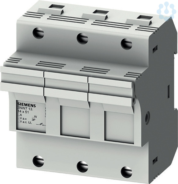 SENTRON, Zylindersicherungshalter, 14x51 mm, 3-polig, In: 50 A, Un AC: 690 V SENTRON Zylindersicherungssystem für den selektiven Anlagenschutz. Siemens Zylindersicherungseinsätze und -sicherungshalter sind für den Einsatz in industriellen Anlagen geeignet. Sie sind in Europa Standard und als Sicherungstrennschalter geprüft und zugelassen aber nicht zum Schalten unter Last vorgesehen. Für das Schalten unter Last bietet Siemens ein umfangreiches Portfolio z.B. 3KF an. Die Siemens Zylindersicherungssysteme zeichnen sich vor allem aus durch: 1. Erfüllung der Normen IEC 60269-1, -2 und -3. 2. Erfüllung der Norm UL 512. 3. Schnellen Sicherungswechsel durch Platz für Ersatzsicherungen im Einschub. 4. Schnelles Erkennen der ausgelösten Sicherung durch blinkende LED im Falle der Auslösung.